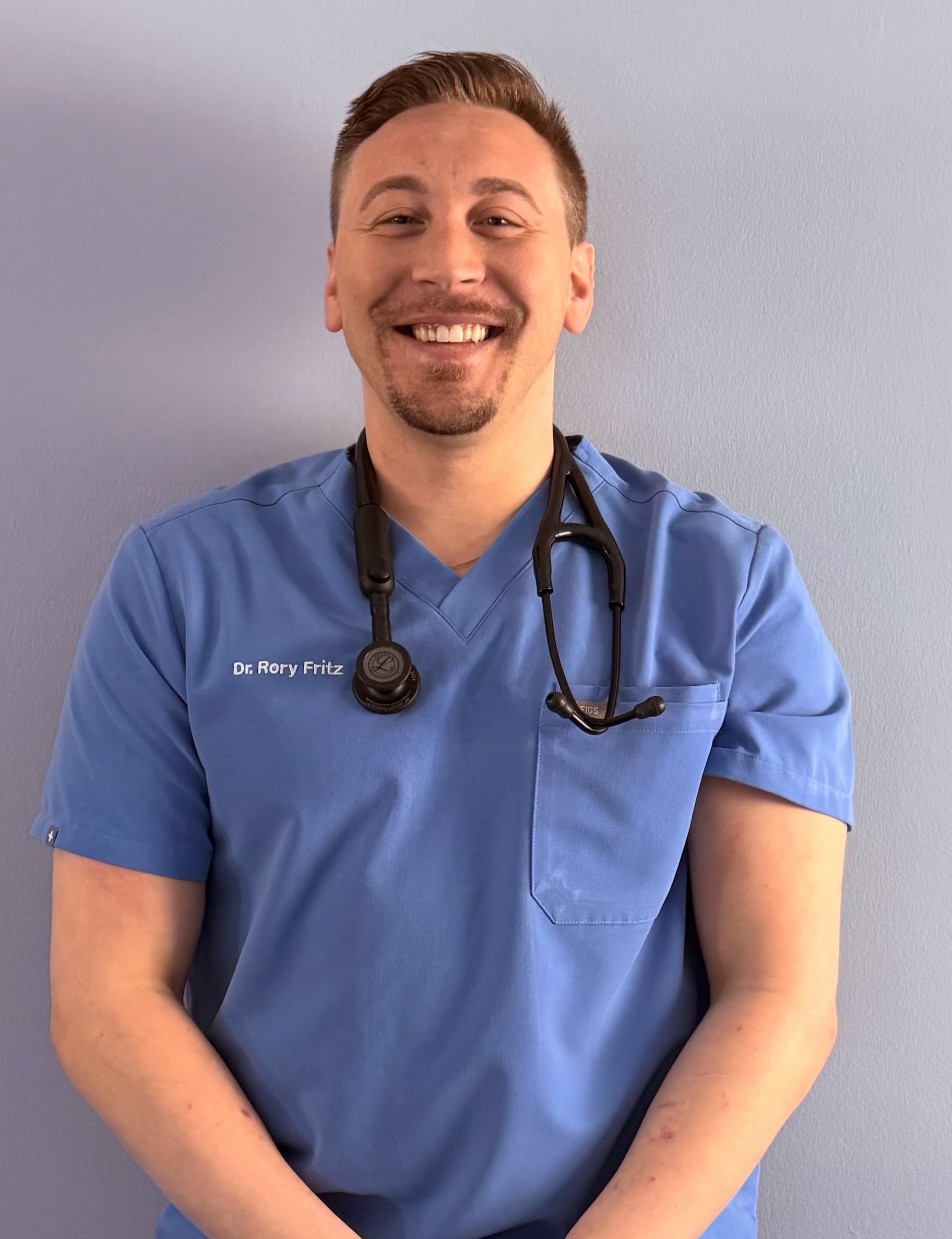 Dr. Fritz is a dedicated small animal veterinarian committed to delivering compassionate, high-quality care with an emphasis on Fear Free techniques and preventative health medicine. He earned his undergraduate degree from Illinois State University before receiving his Doctor of Veterinary Medicine from Ross University School of Veterinary Medicine. He completed his clinical training at University of Tennessee, where he further developed his medical and surgical expertise.